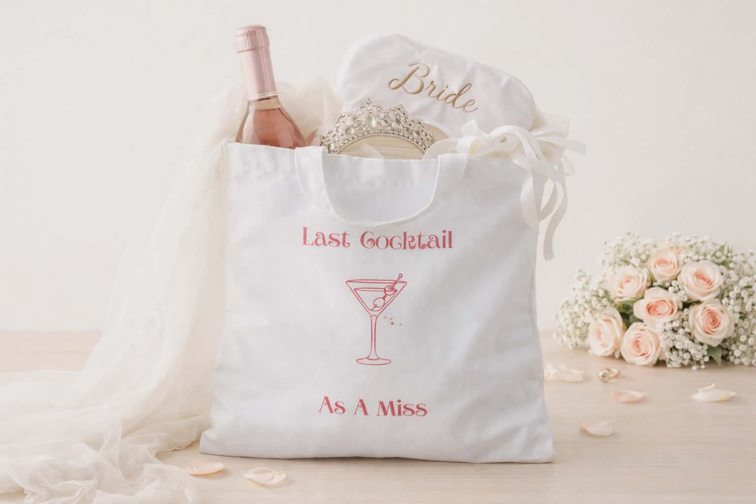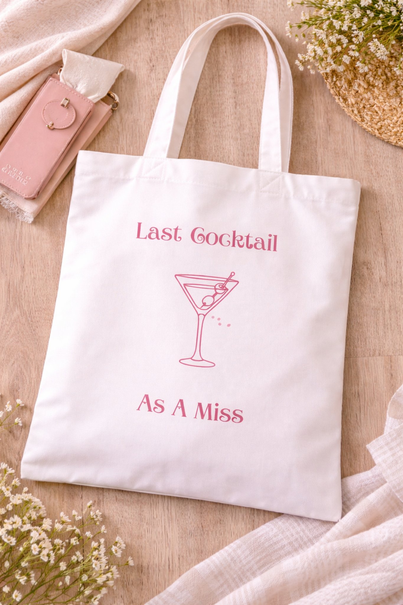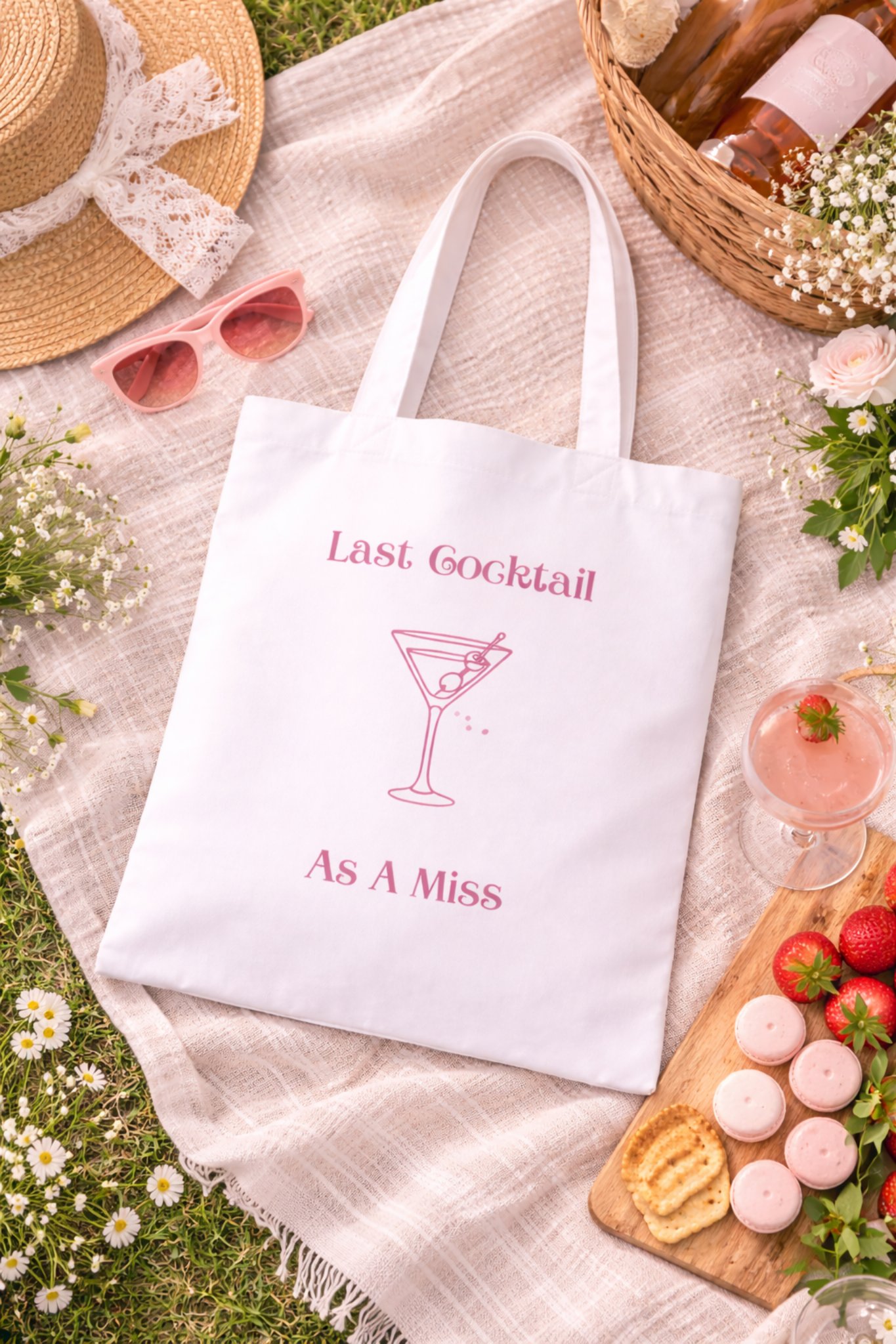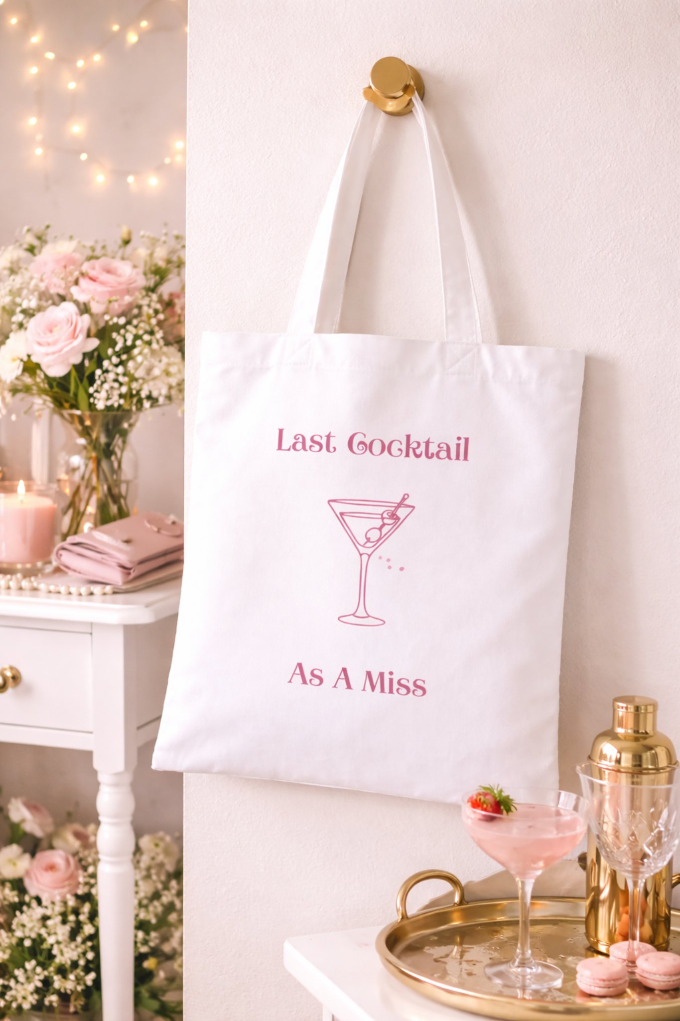 Celebrate the bride-to-be in style with our Last Cocktail As A Miss Tote Bag, the perfect accessory for bachelorette parties, bridal showers, and wedding weekends. Designed with a chic pink cocktail graphic, this bag adds a fun and elegant touch to any bride’s celebration.