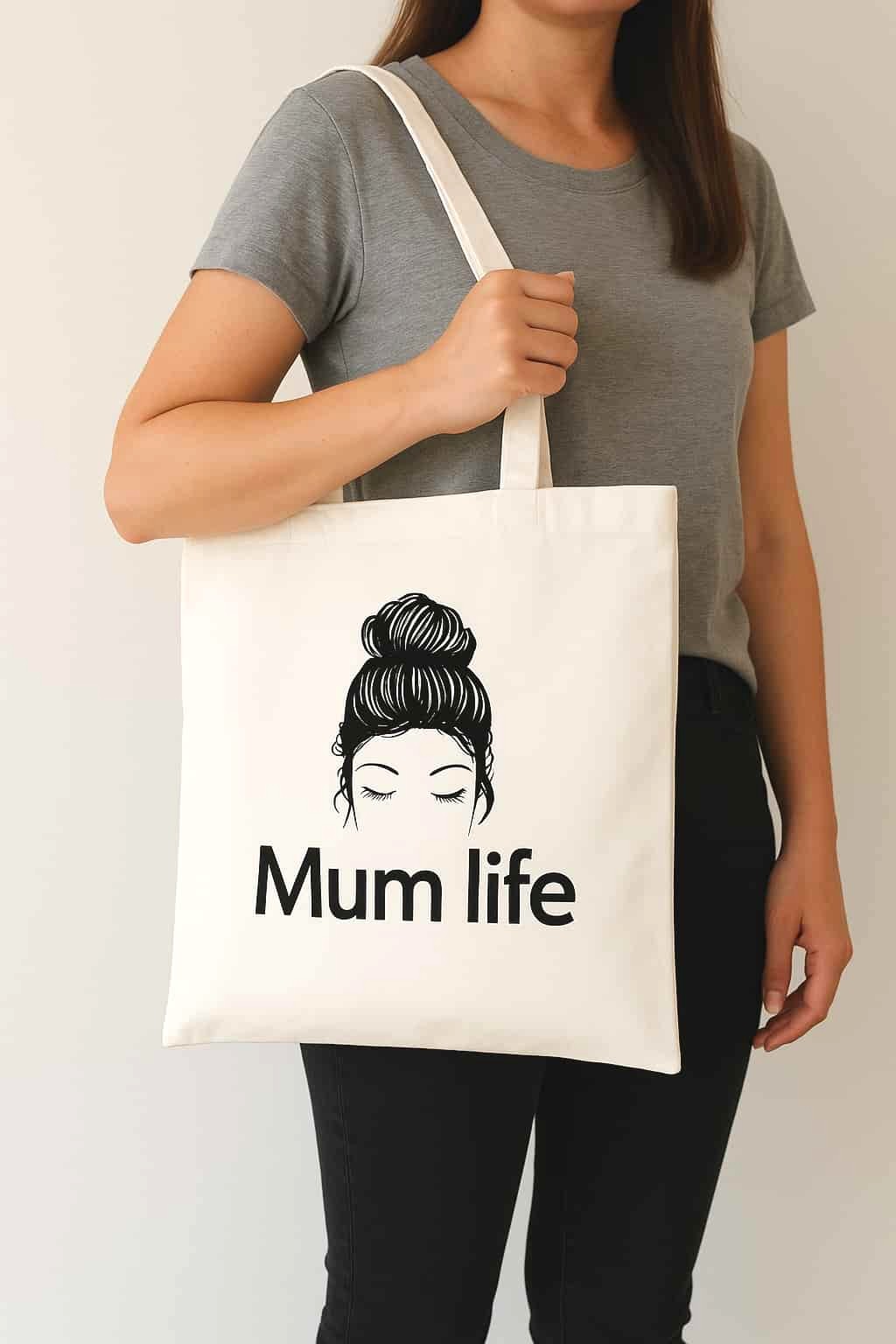 Carry your essentials in style with this “Mum Life” tote bag, designed for busy mums who love a blend of practicality and personality. Featuring a chic hair-bun graphic and bold text, this everyday bag is perfect for errands, school runs, shopping trips, and more. Lightweight, durable, and roomy—your new go-to mum accessory.