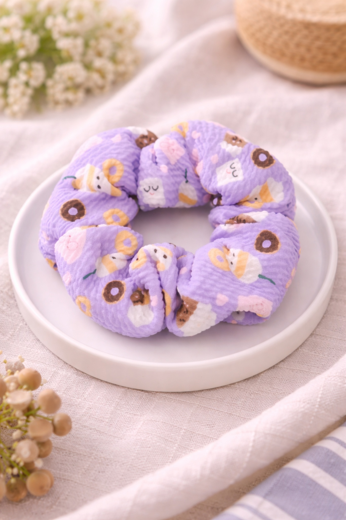 ✨ Purple Donut & Coffee Scrunchie ✨